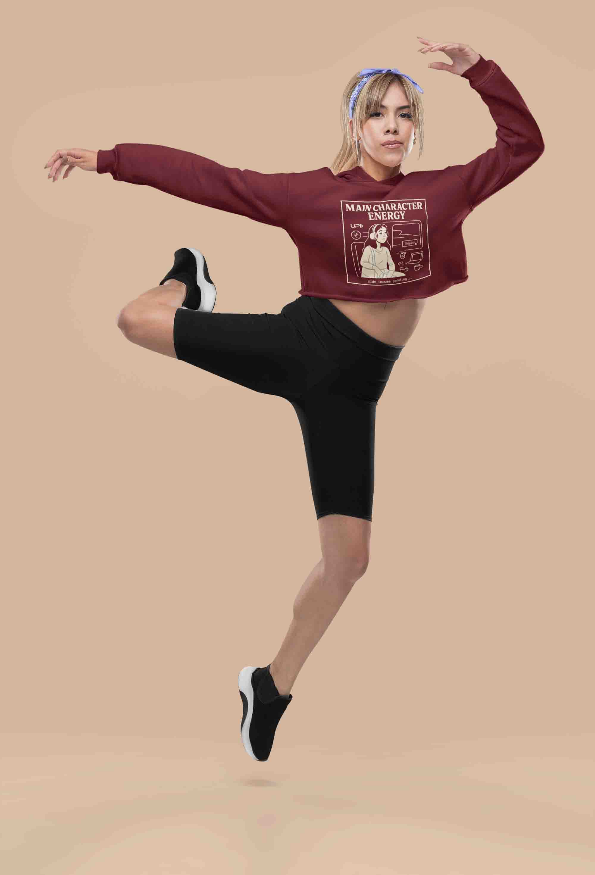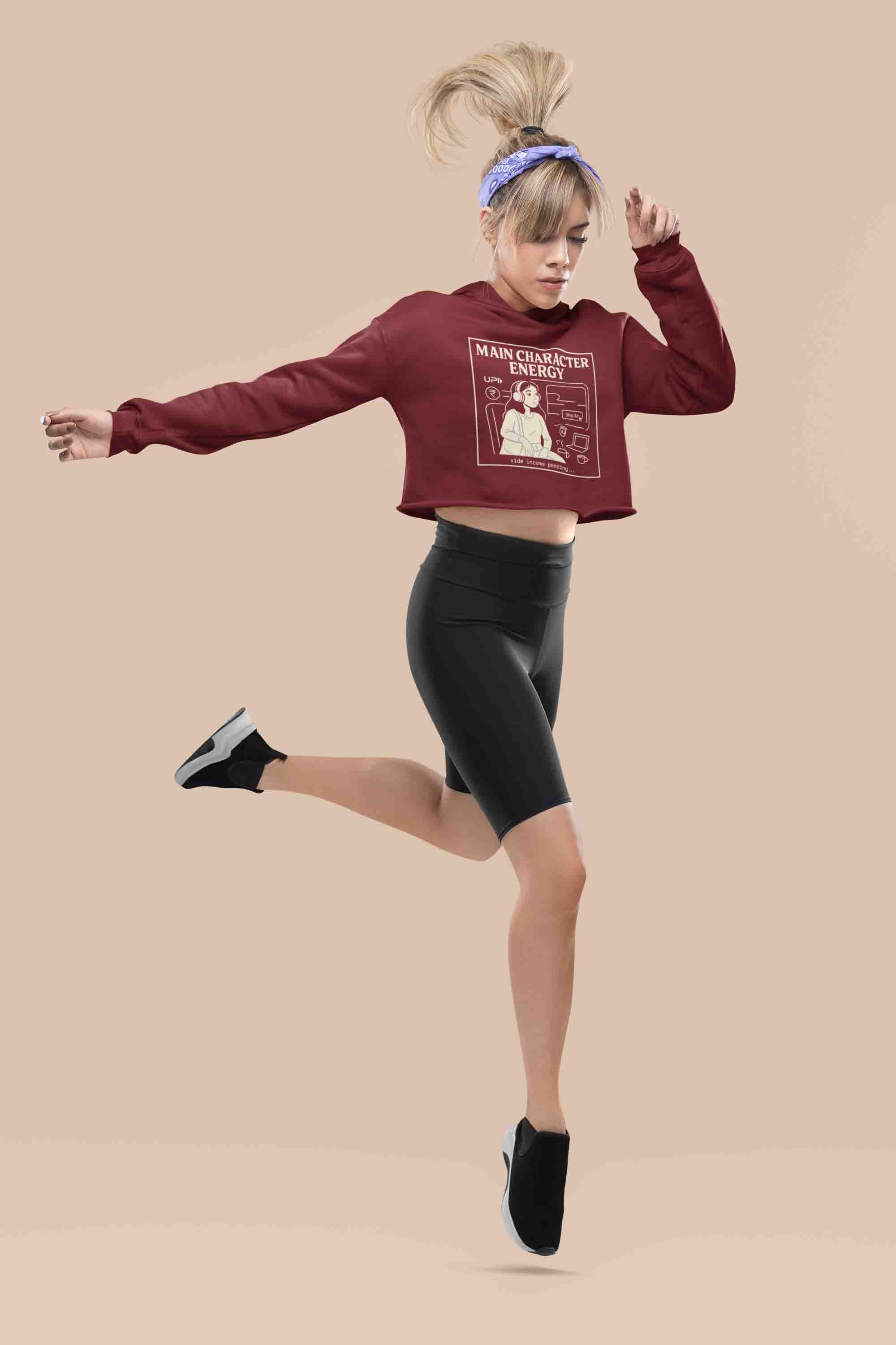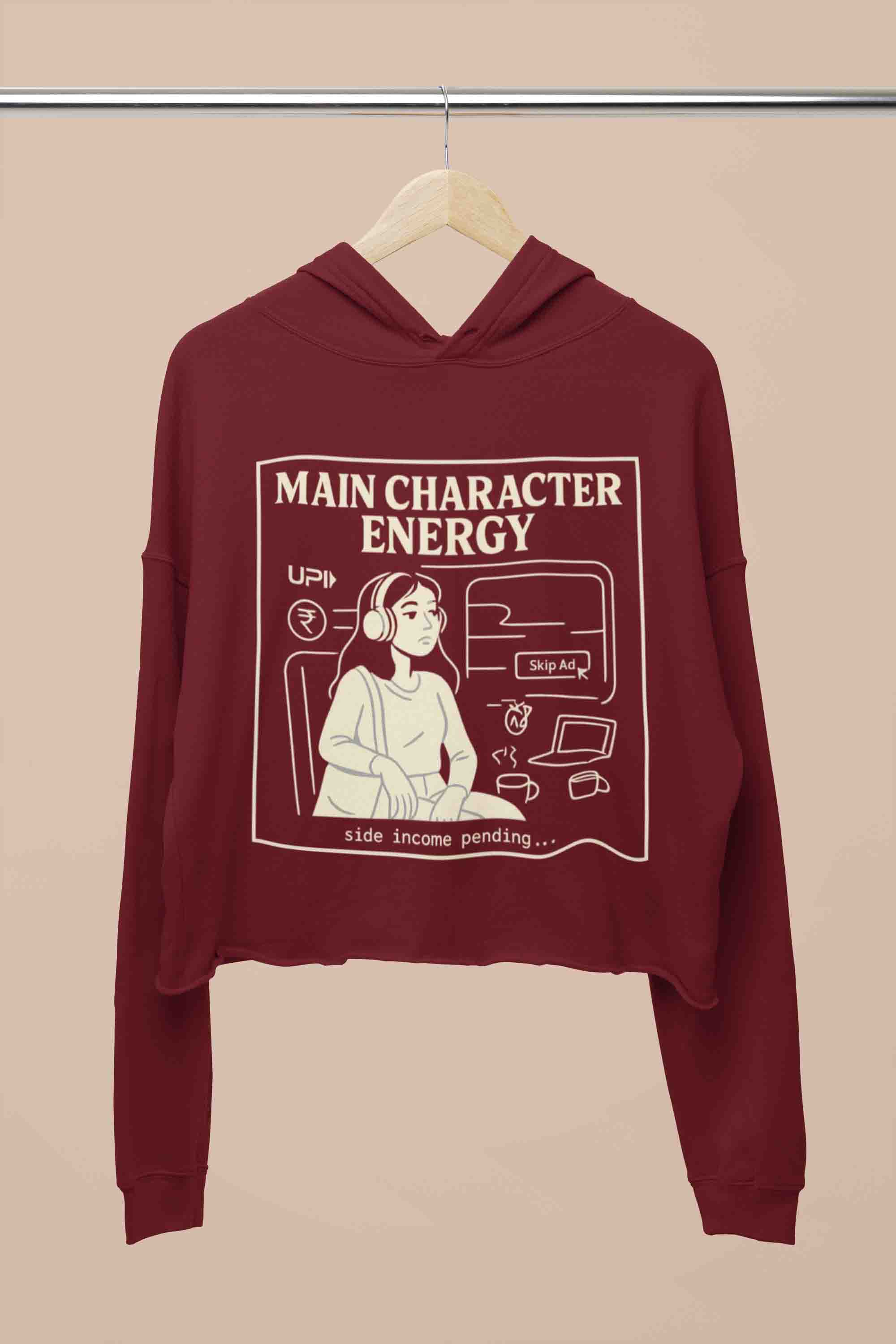 Maroon crop hoodie with Main Character Energy. Soft, bold, and a little unbothered—perfect for studio days, street fits, and “side income pending…” vibes.