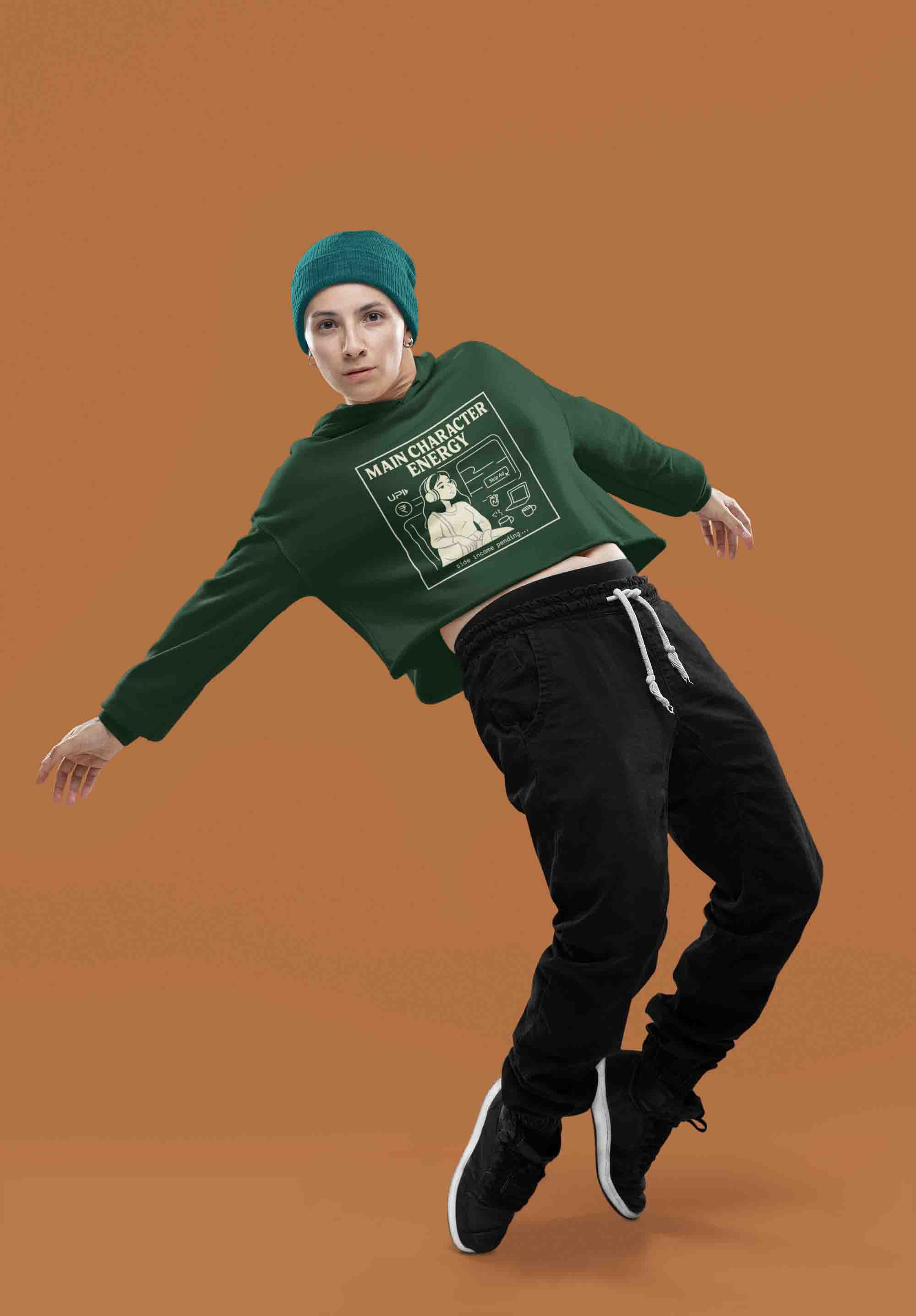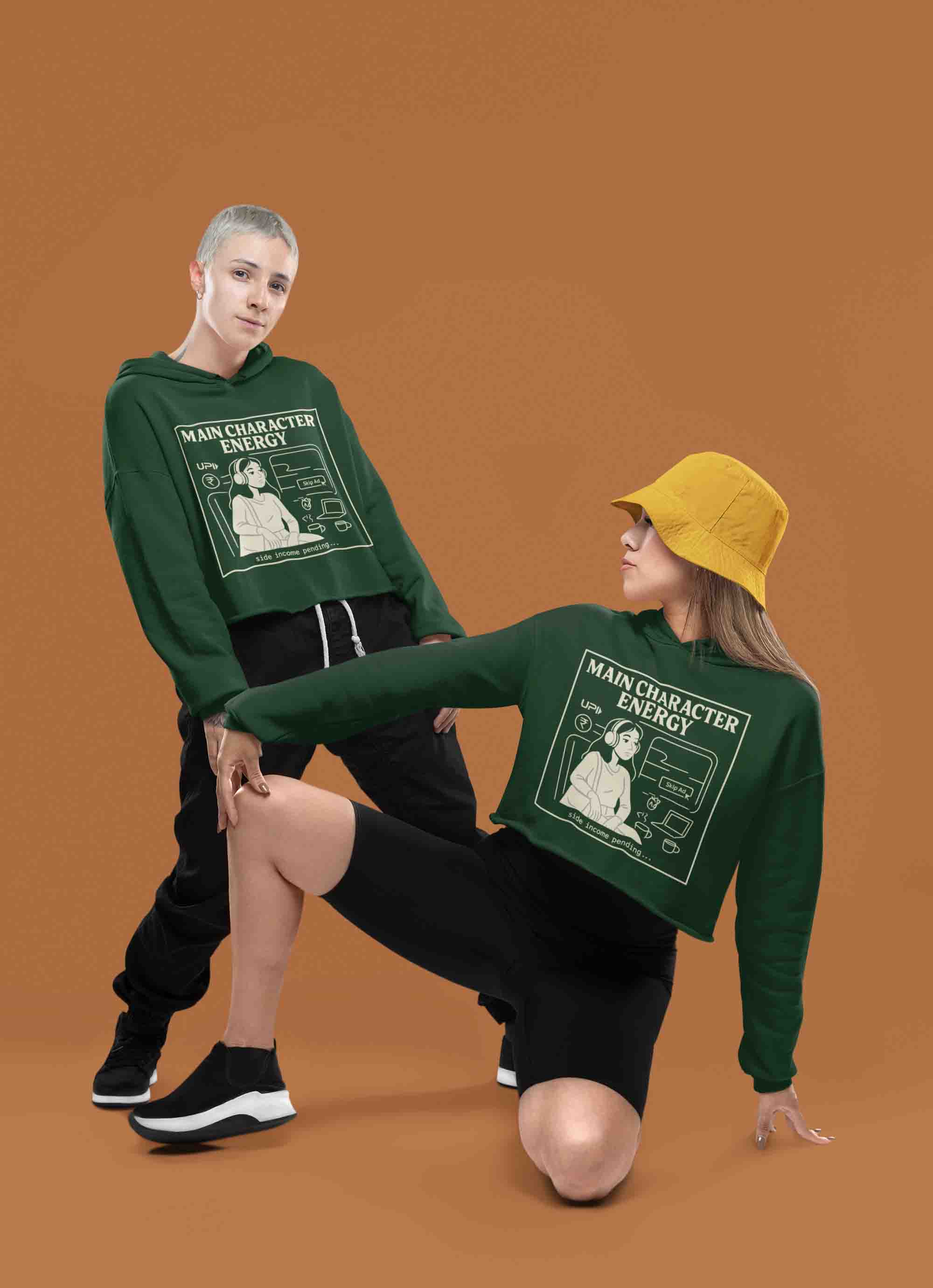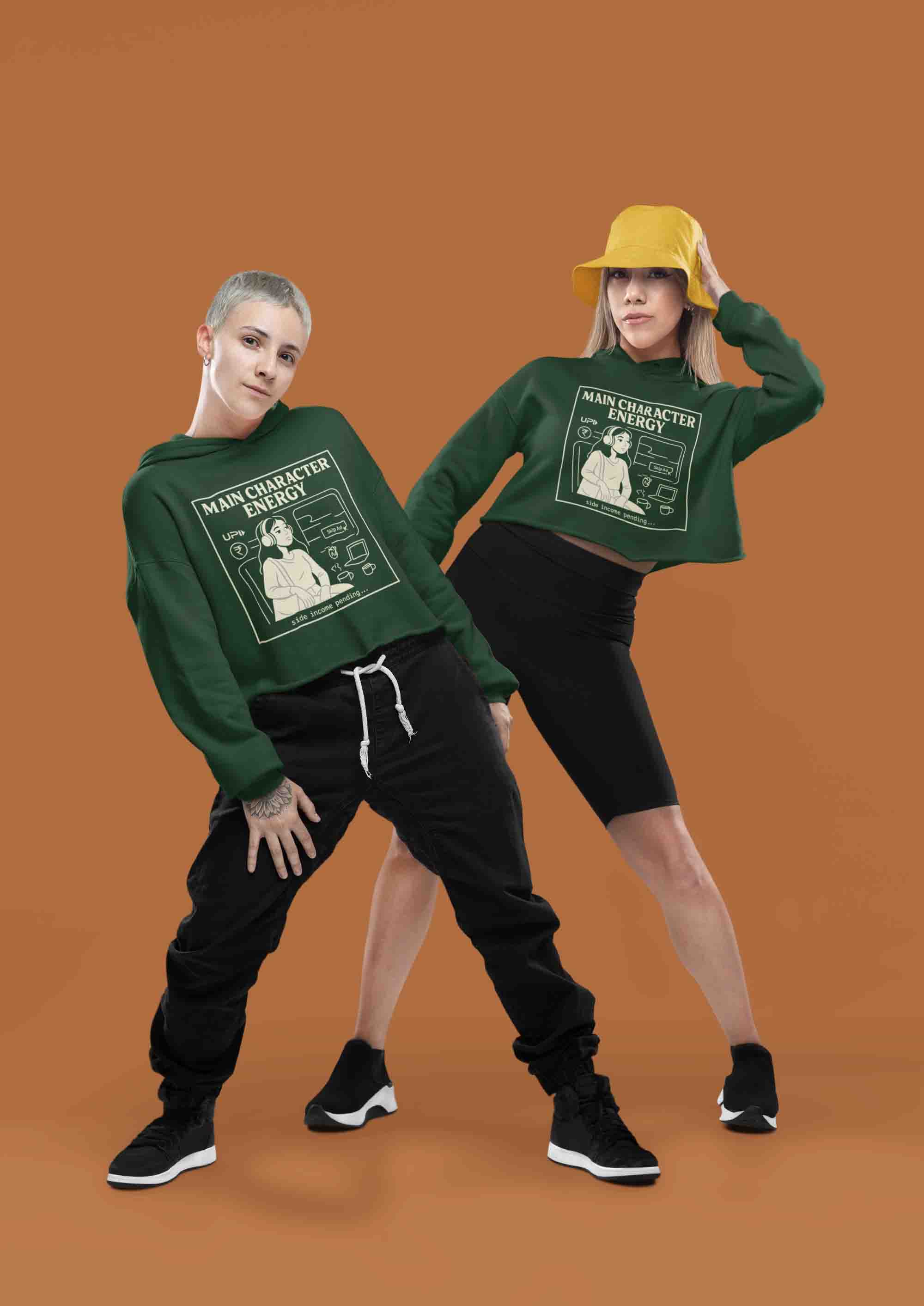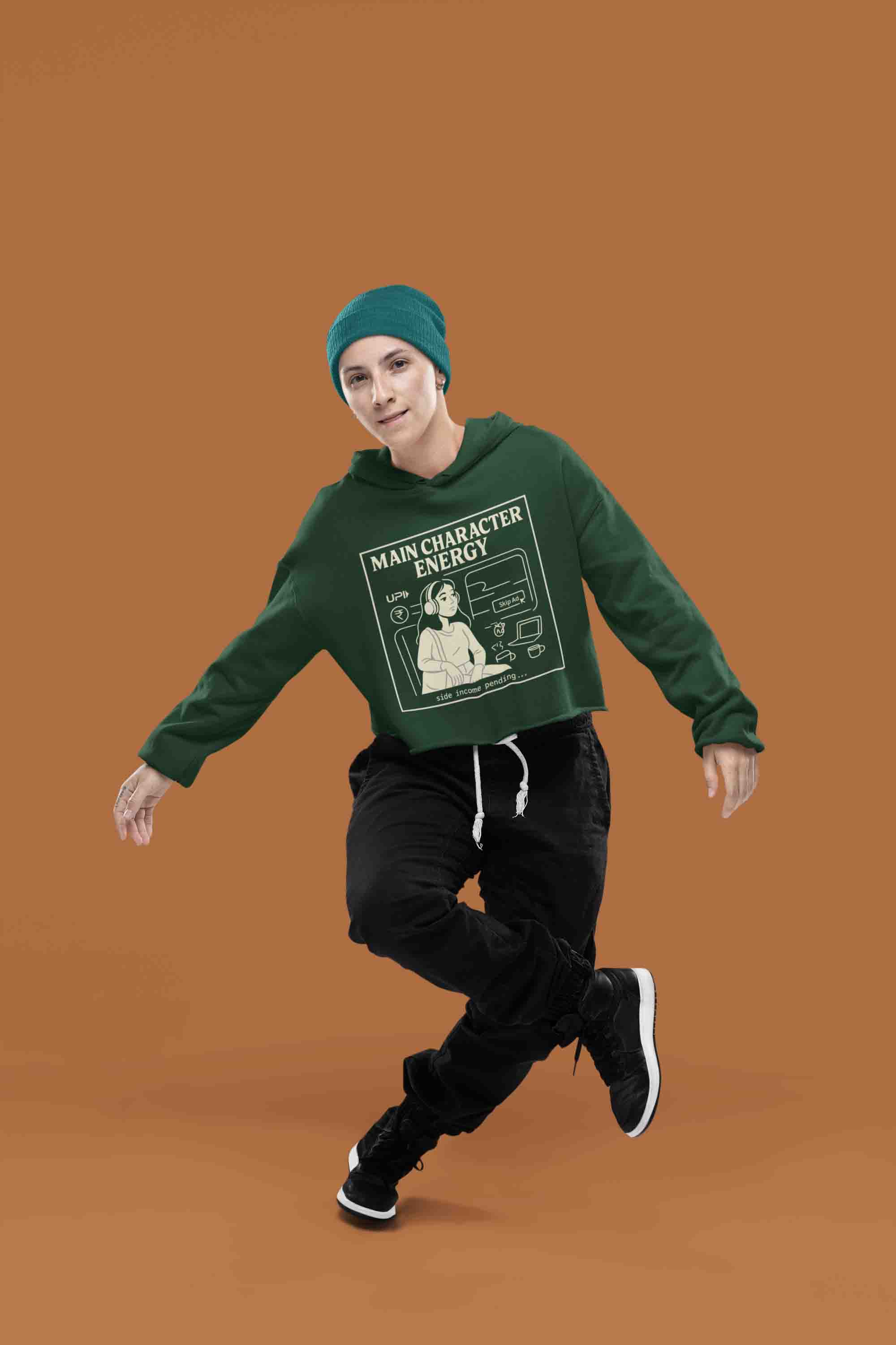 Olive green crop hoodie for main-character days—soft, bold, and ready to hit “Skip Ad” on the noise. Side income pending… 😉