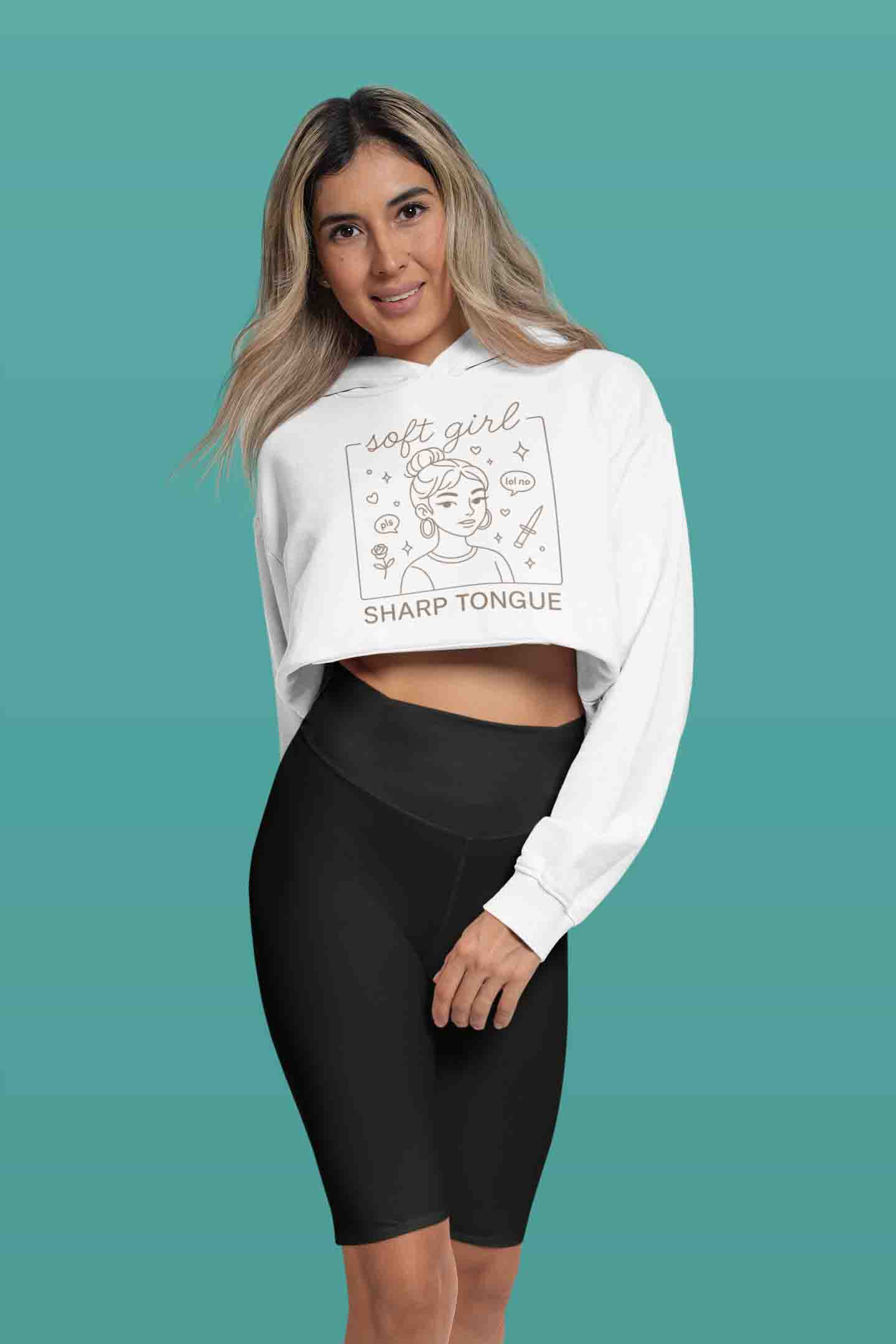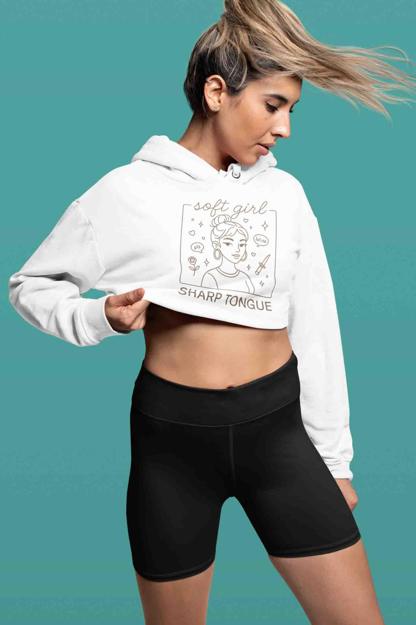 Soft girl look. Sharp tongue attitude. Cozy cropped hoodie for cute-with-bite days.