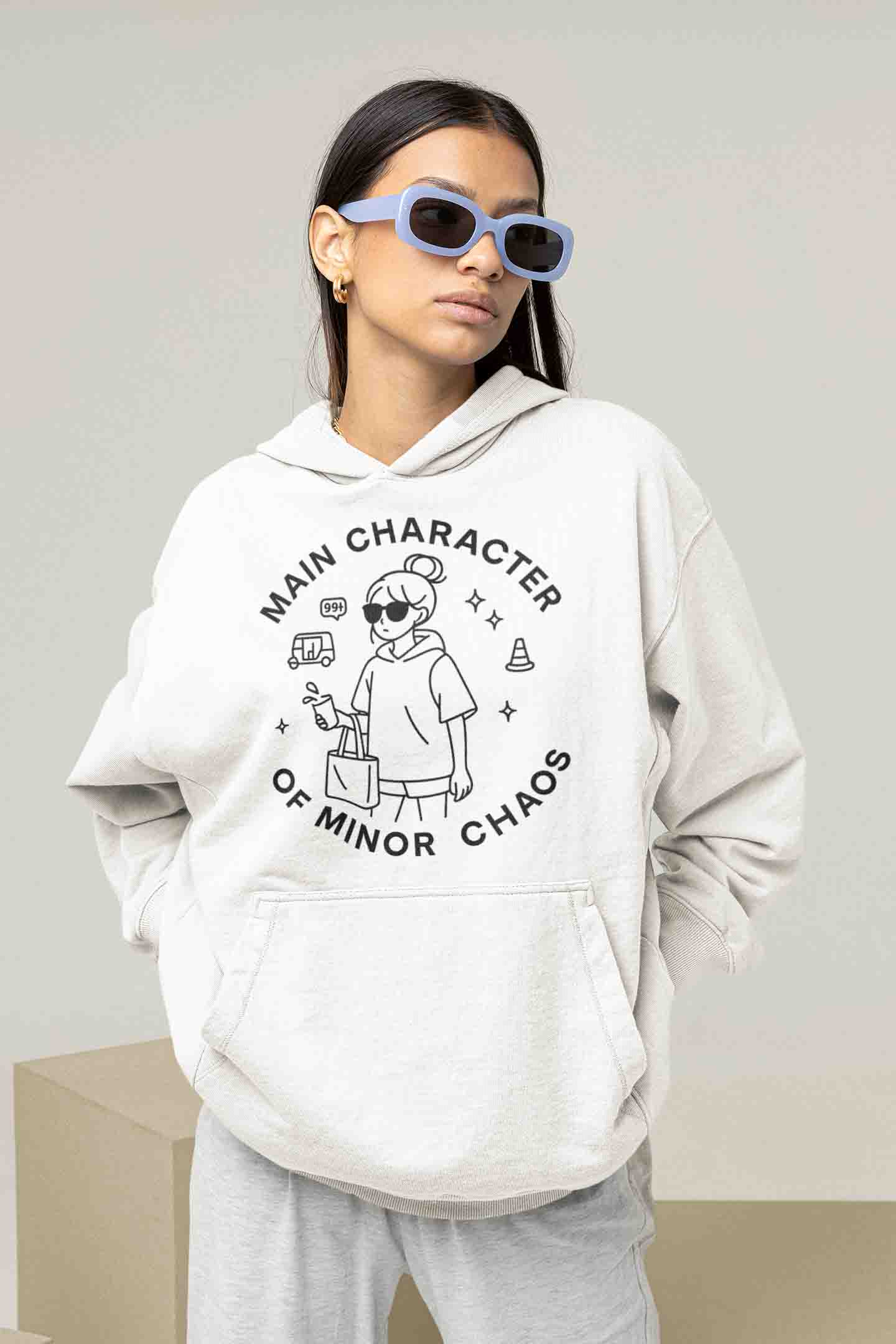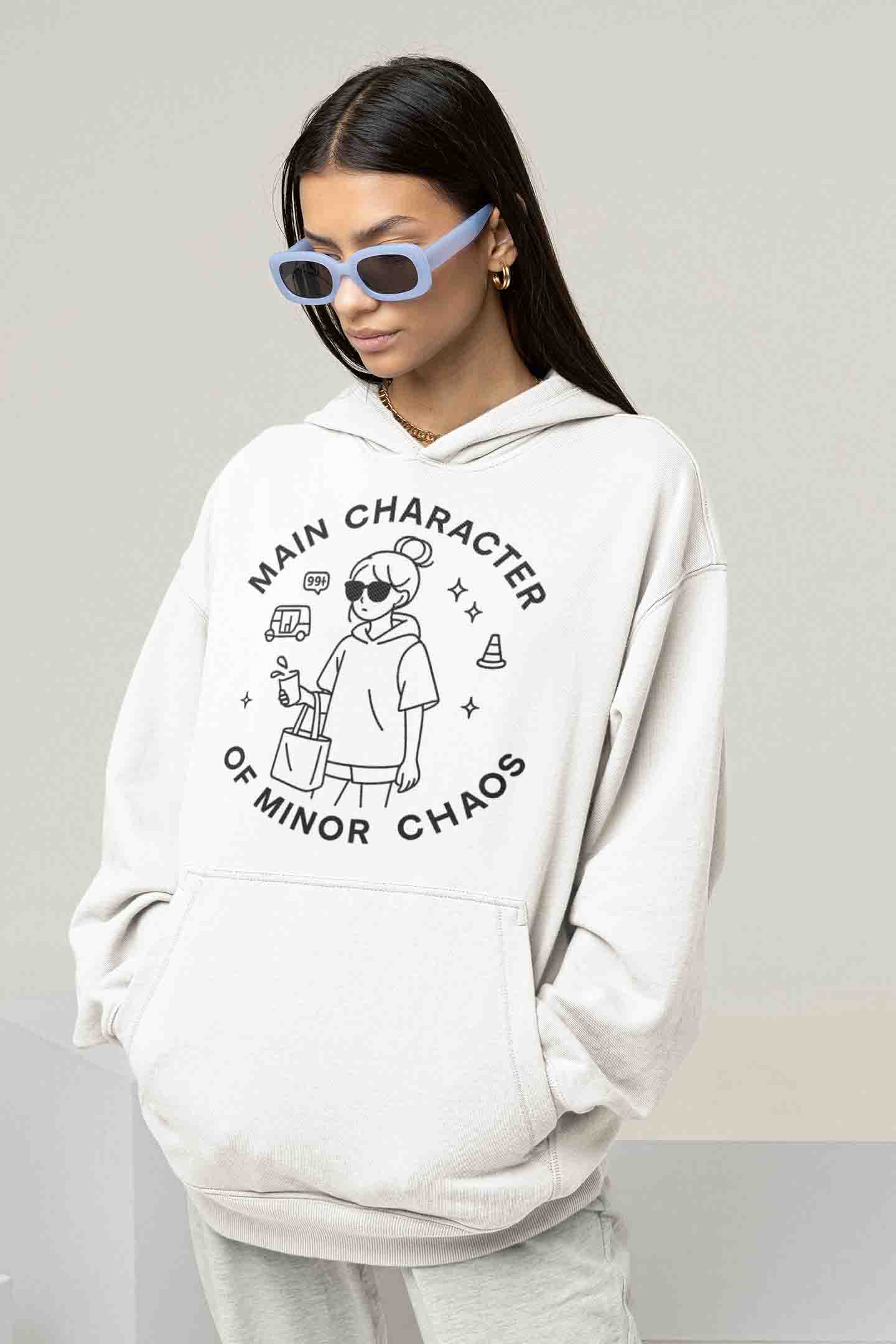 Main character energy, zero effort. This white oversized hoodie serves “Minor Chaos” style with cozy, slouchy comfort—on repeat.